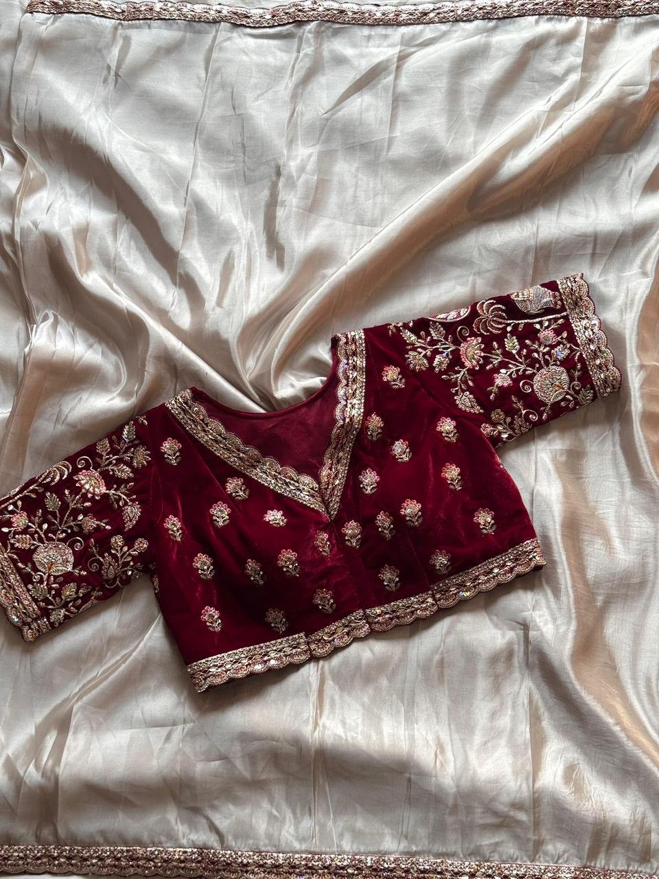 Teamed with designer Velvet coding work stitched blouse piece