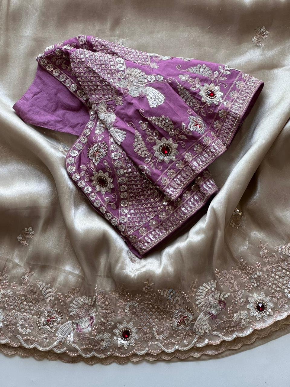 🎀 Teamed with Designer Stitched blouse of fully Multi sequence handworked & pearl work