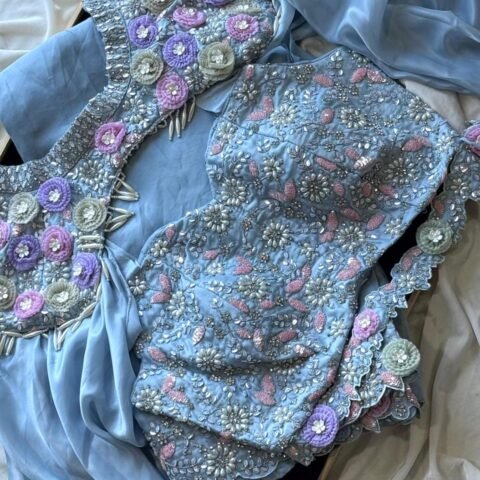 ❤️ Teamed with Designer Stitched blouse of fully Multi sequence hand worked