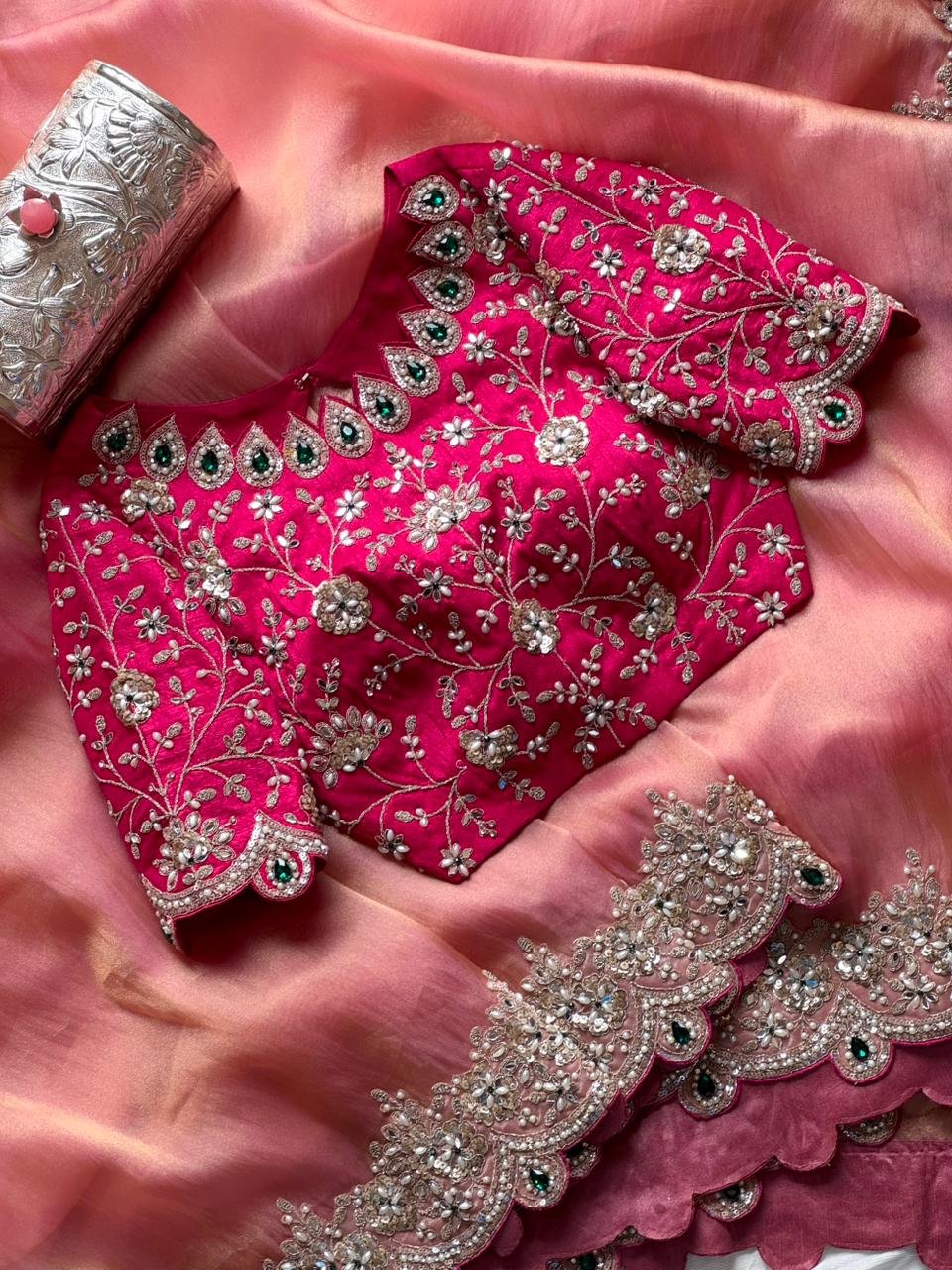 Teamed with Designer contrast Blouse fully Multi sequence worked