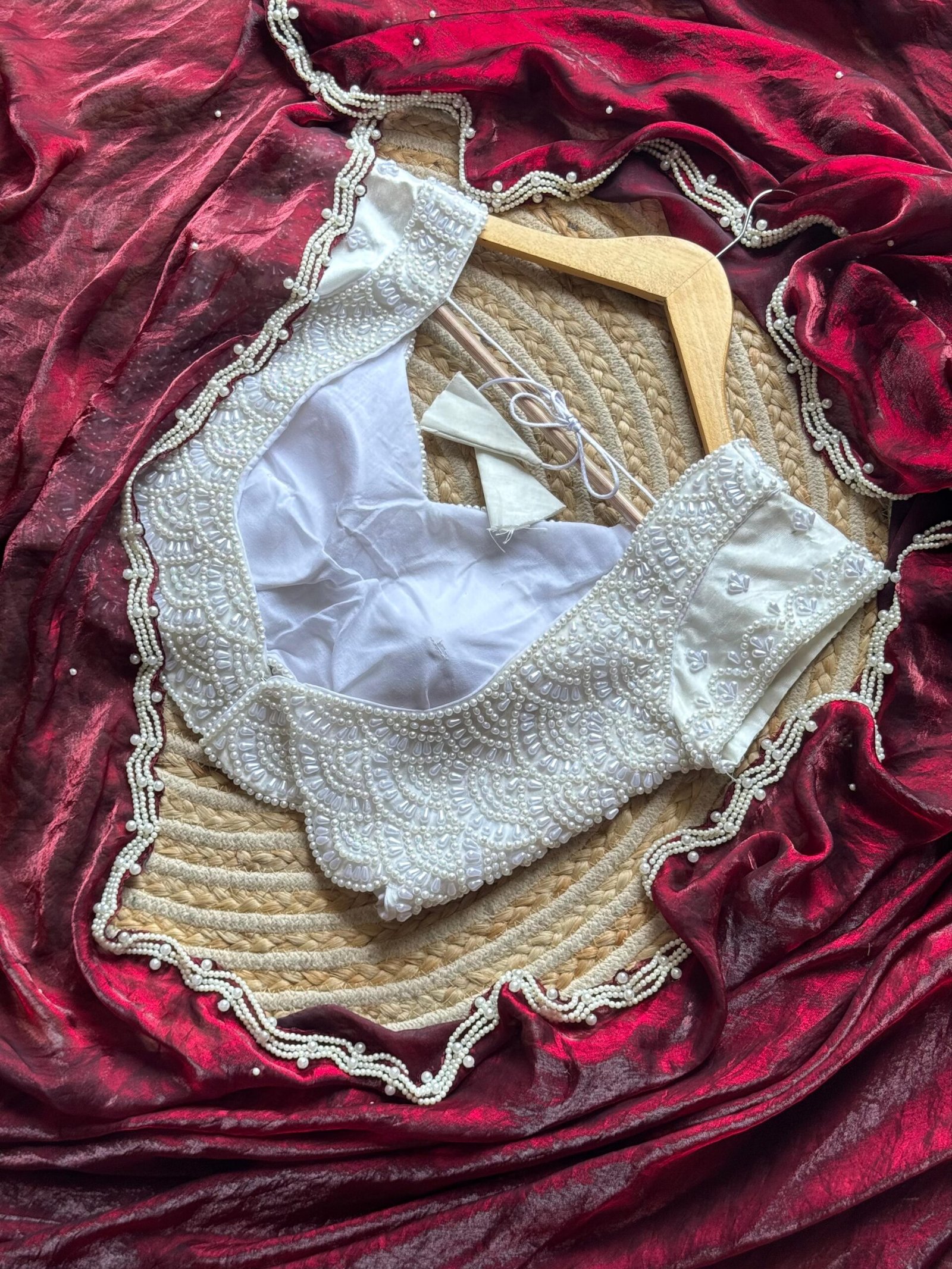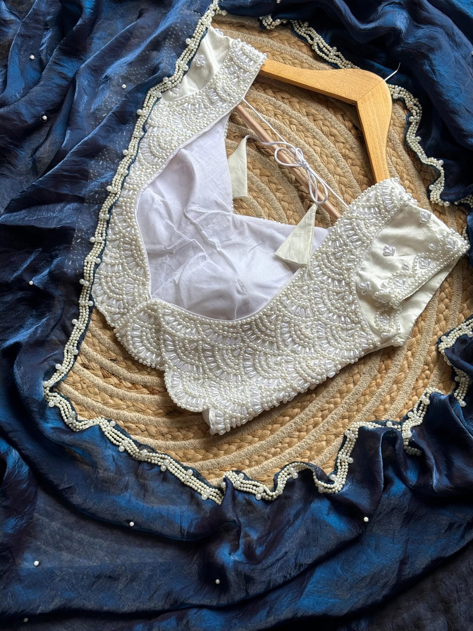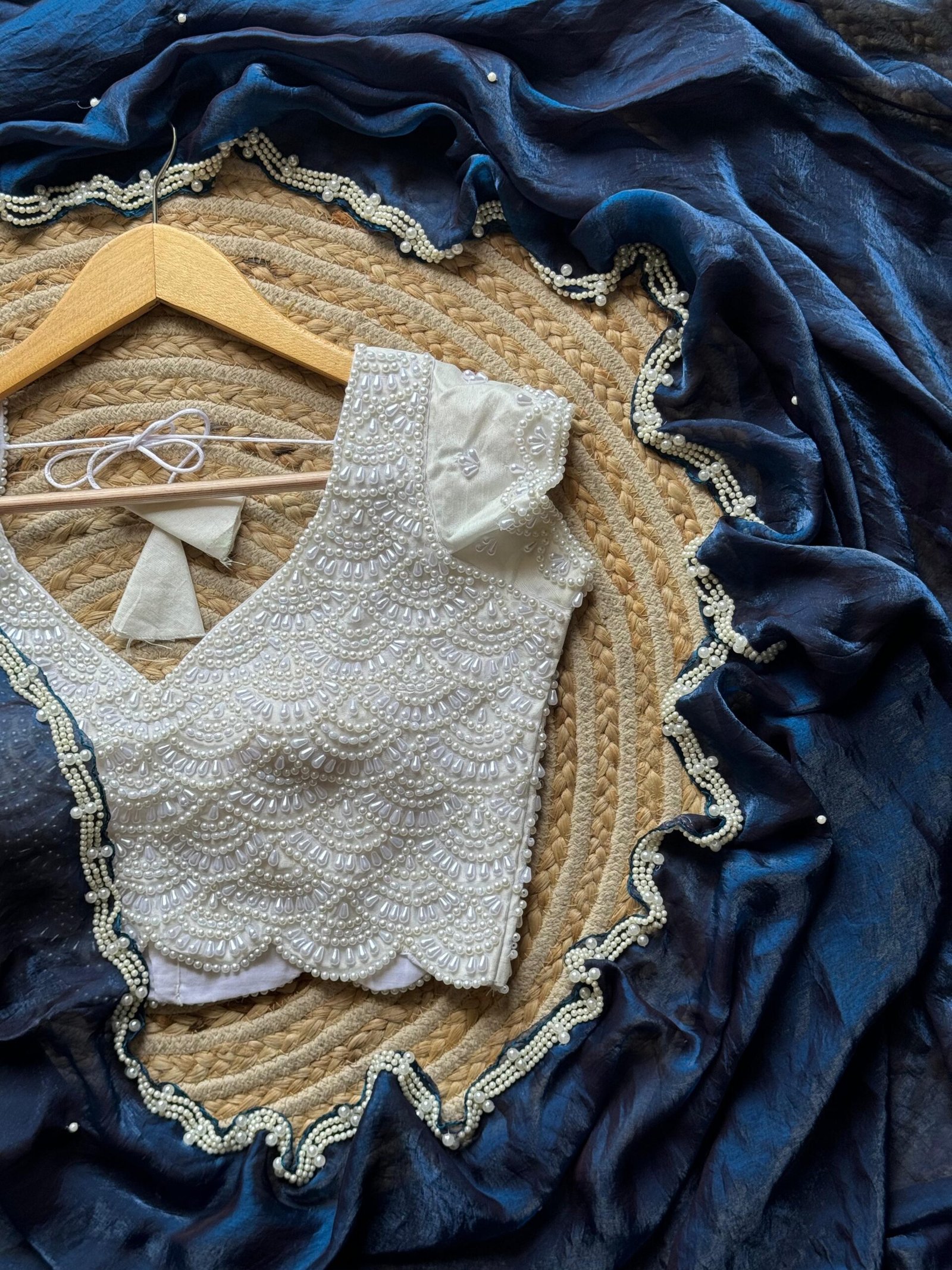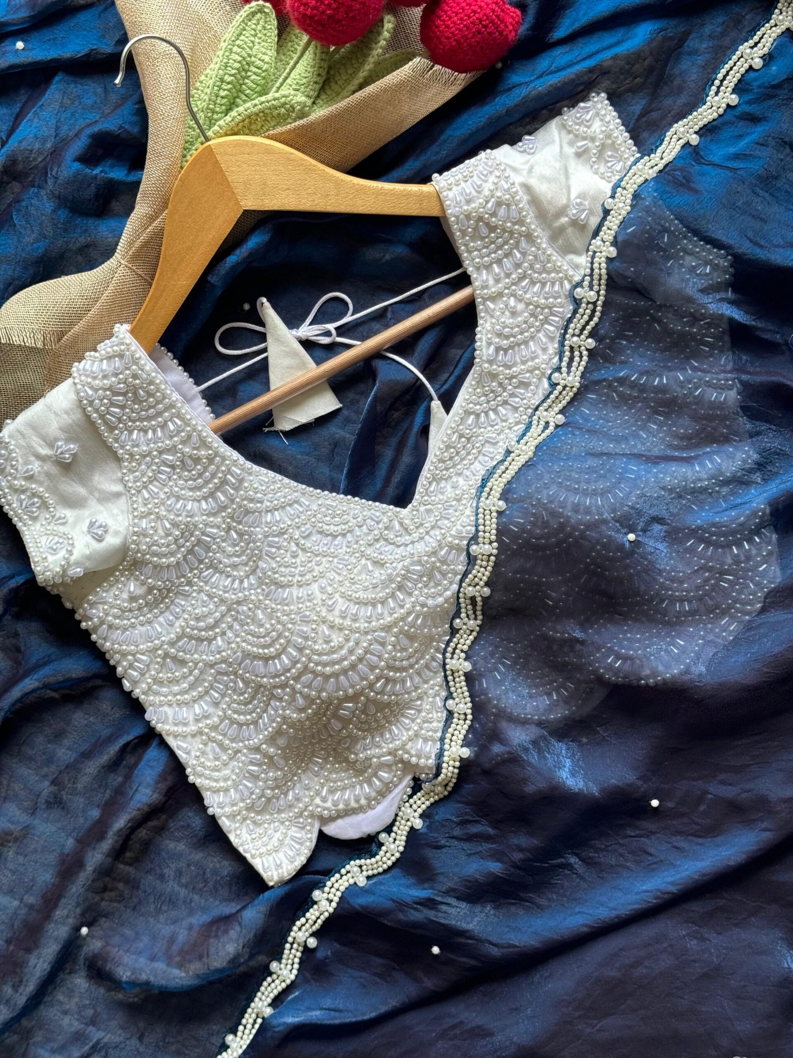 Blouse :- stitched blouse fully pearls work with silver