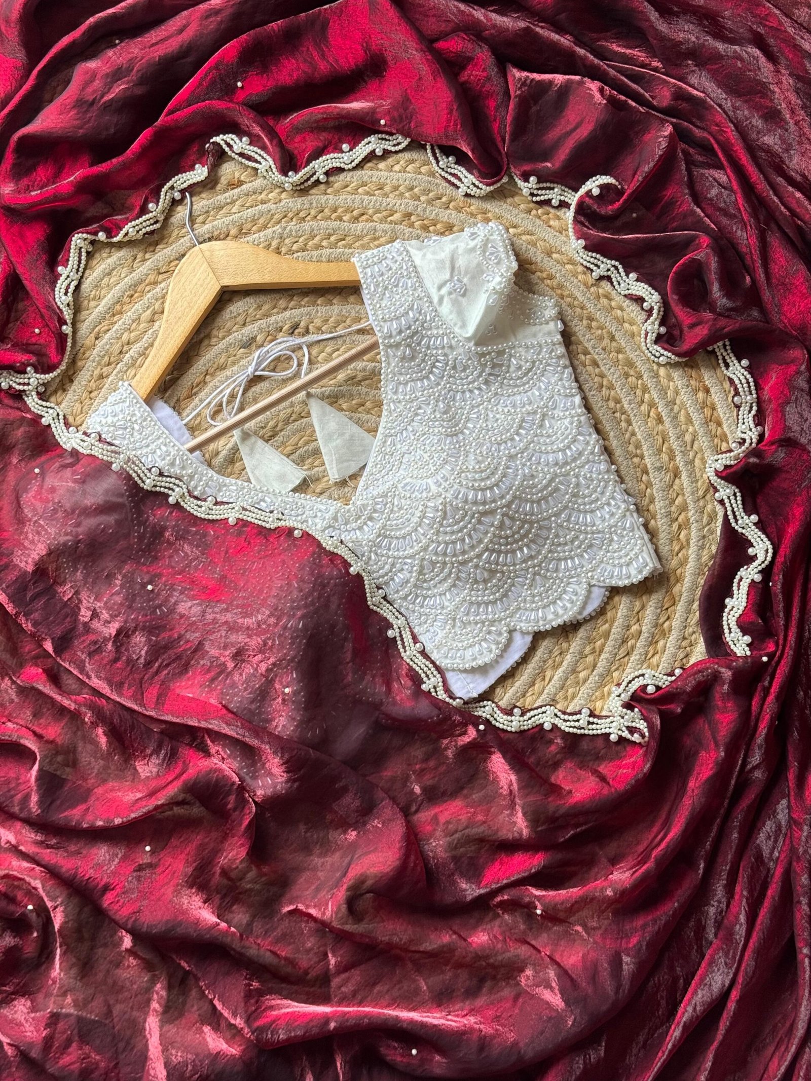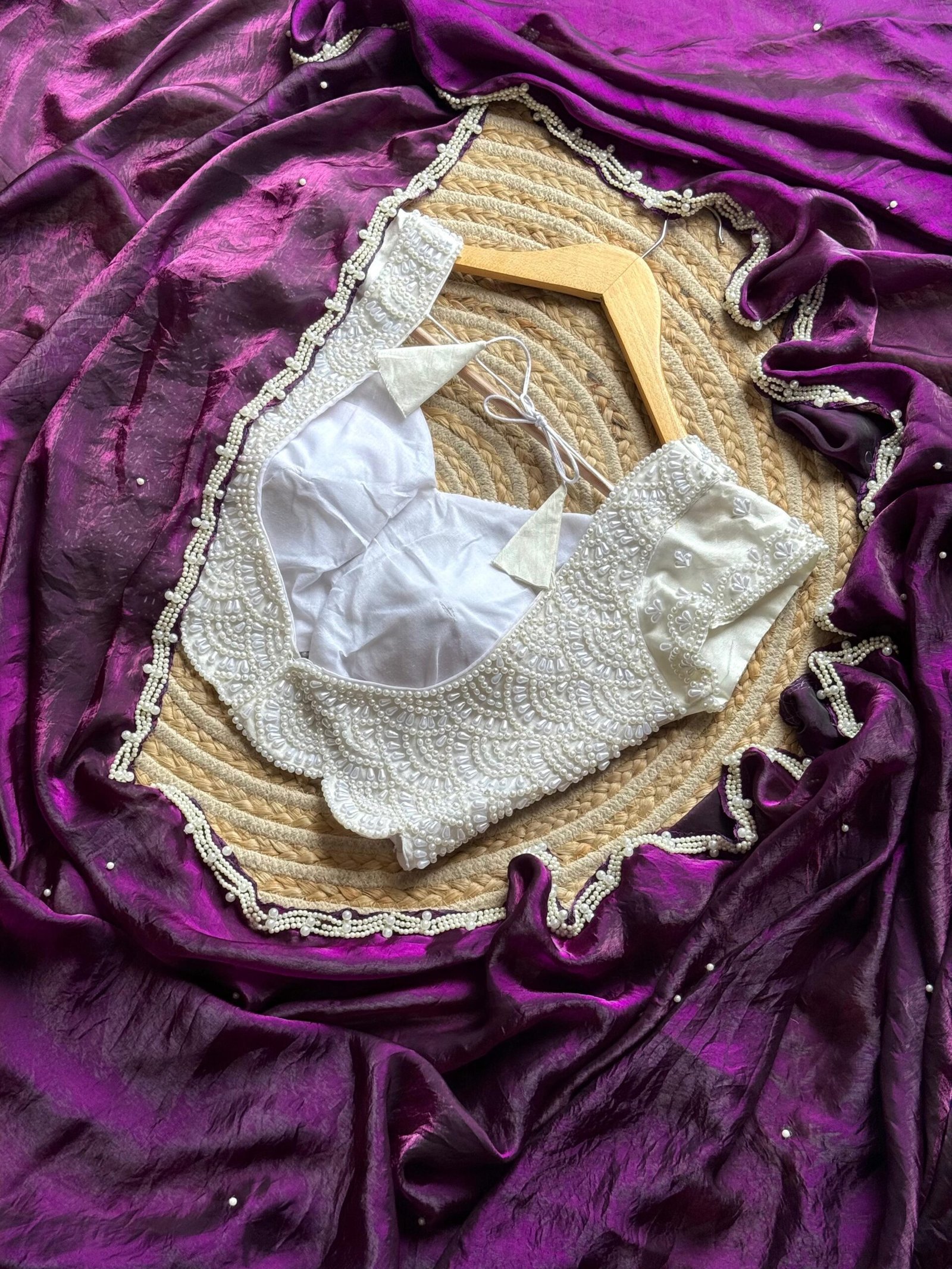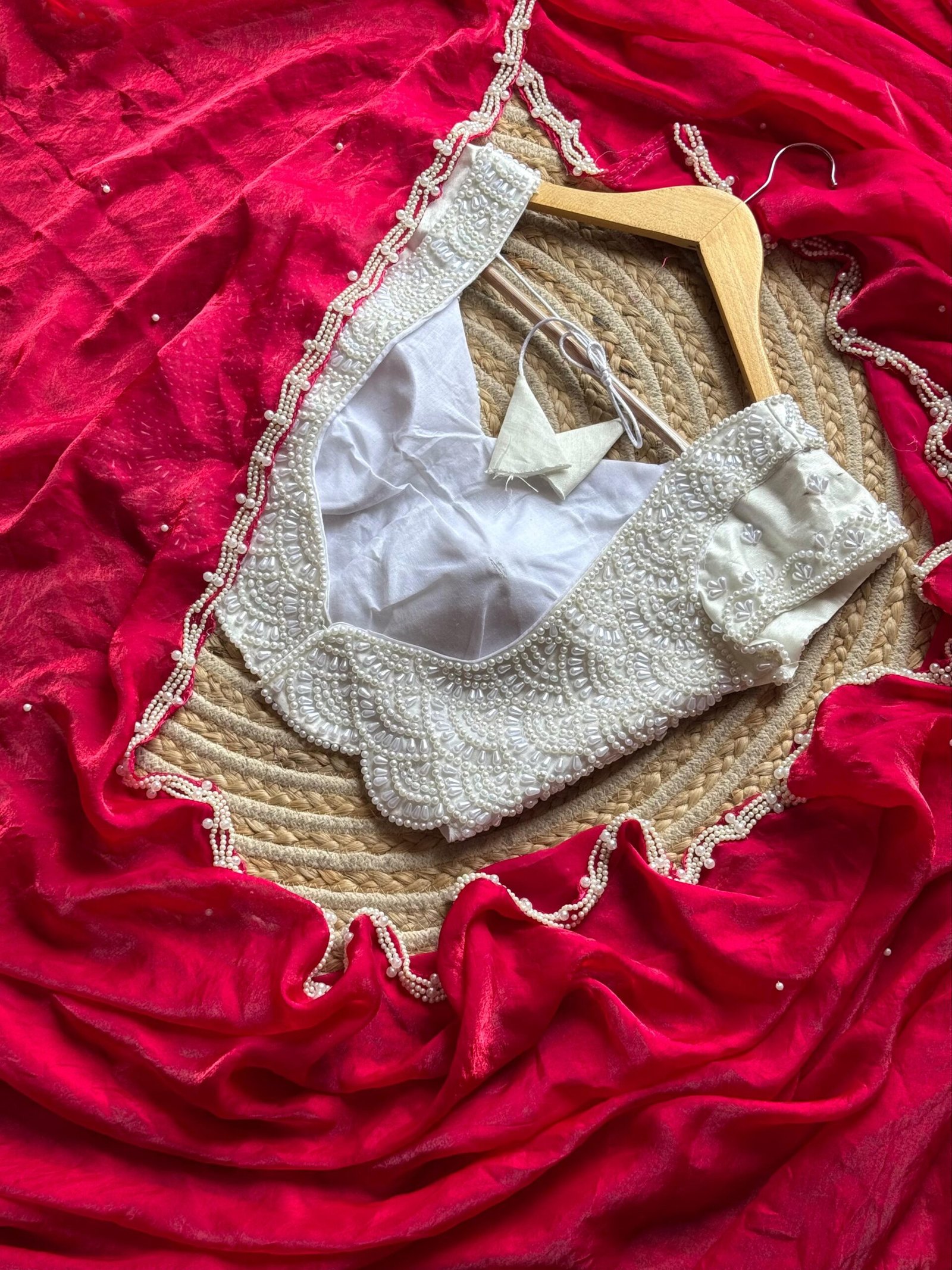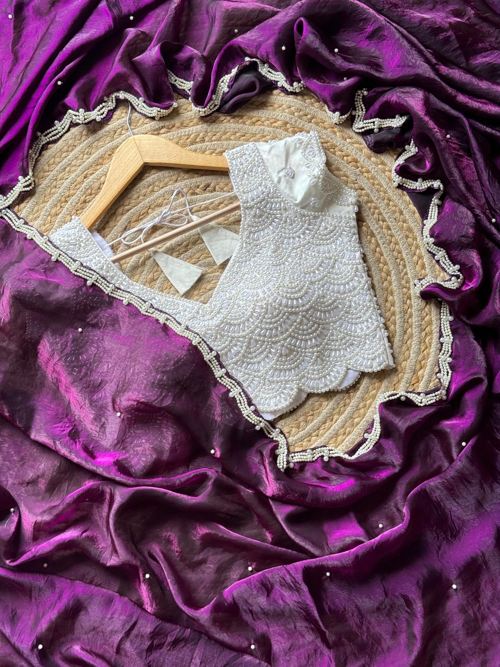 Blouse :- stitched blouse fully pearls work with silver