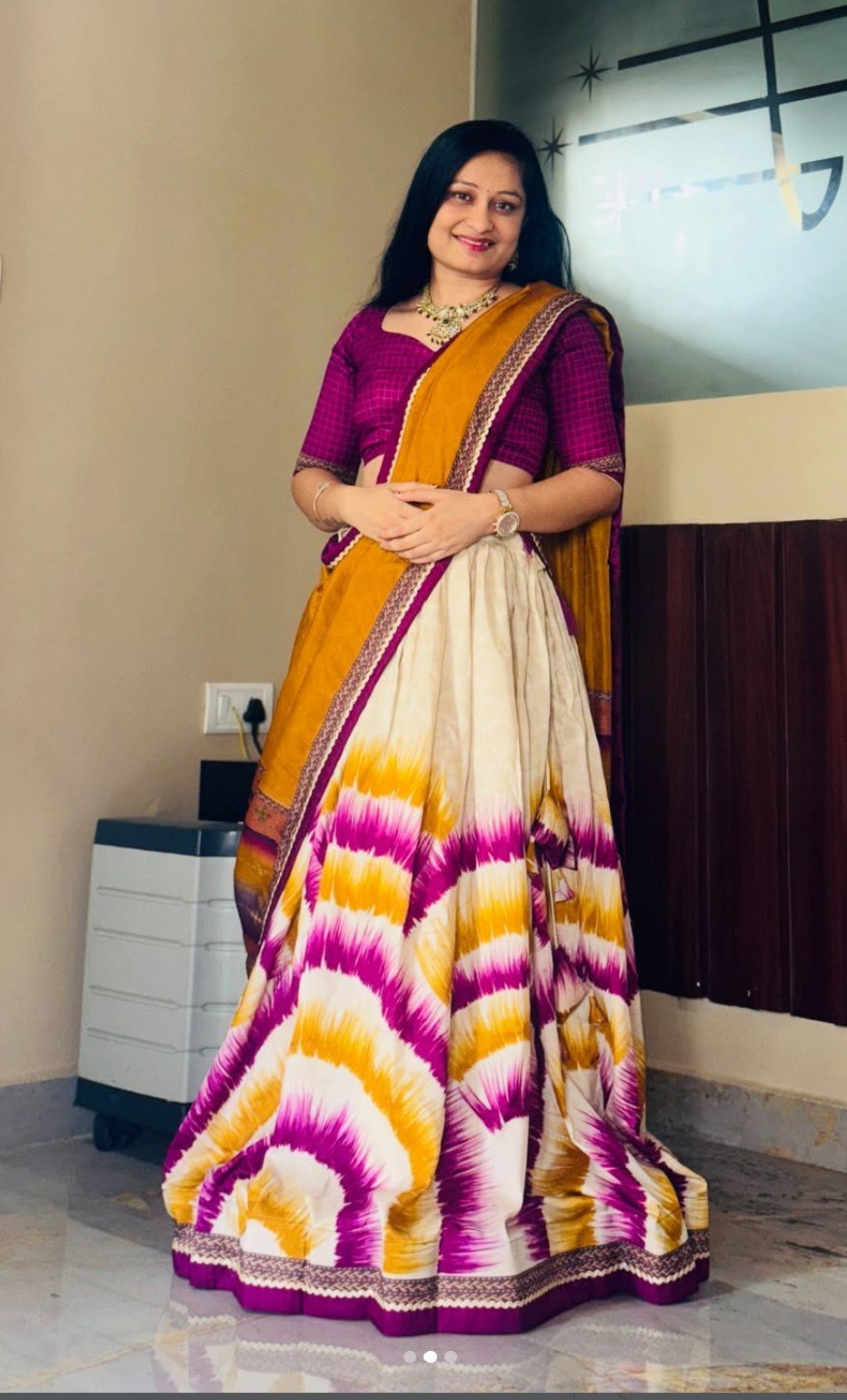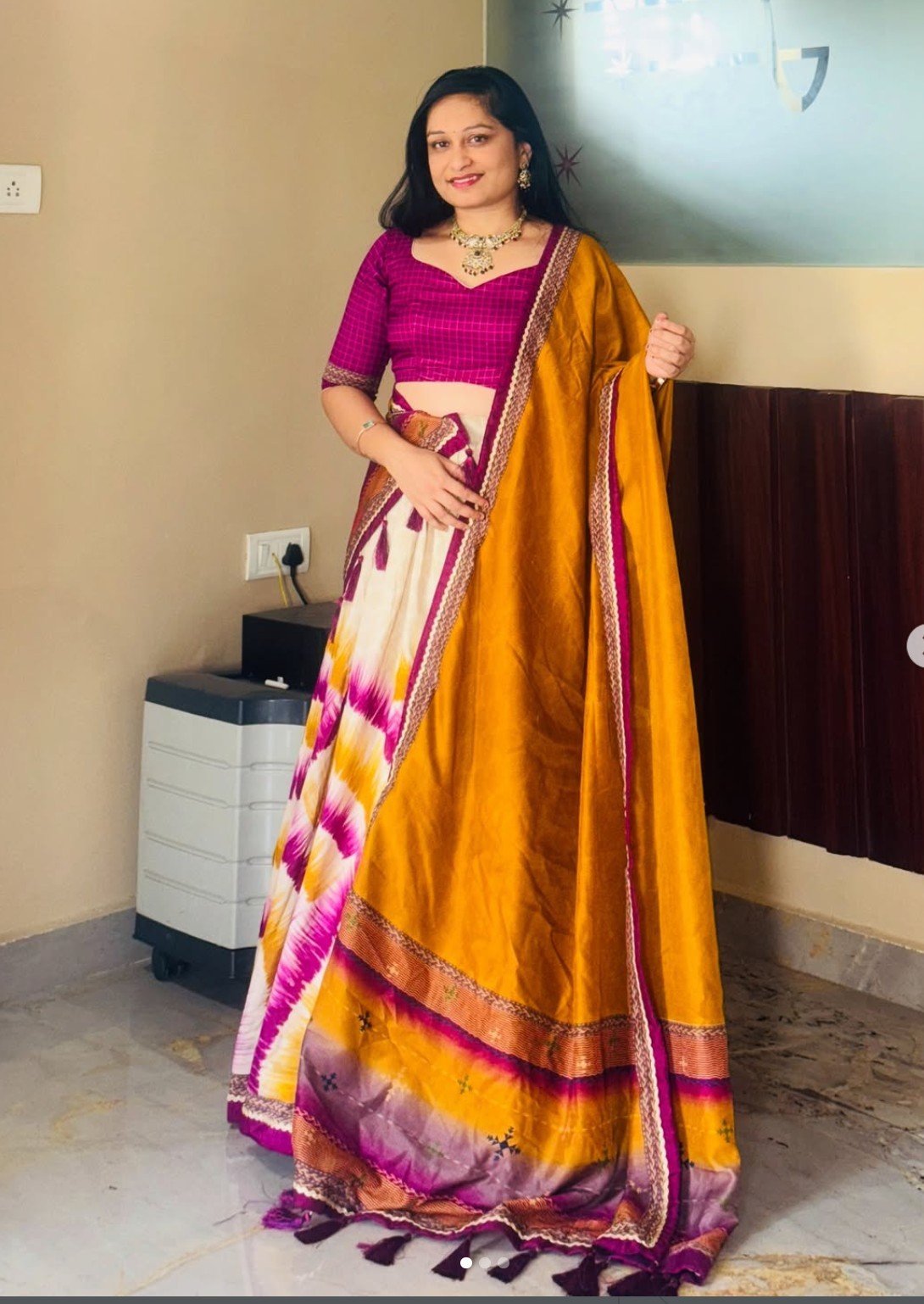 Lehenga Work : Tie And Dye Print With Lace Touch Up