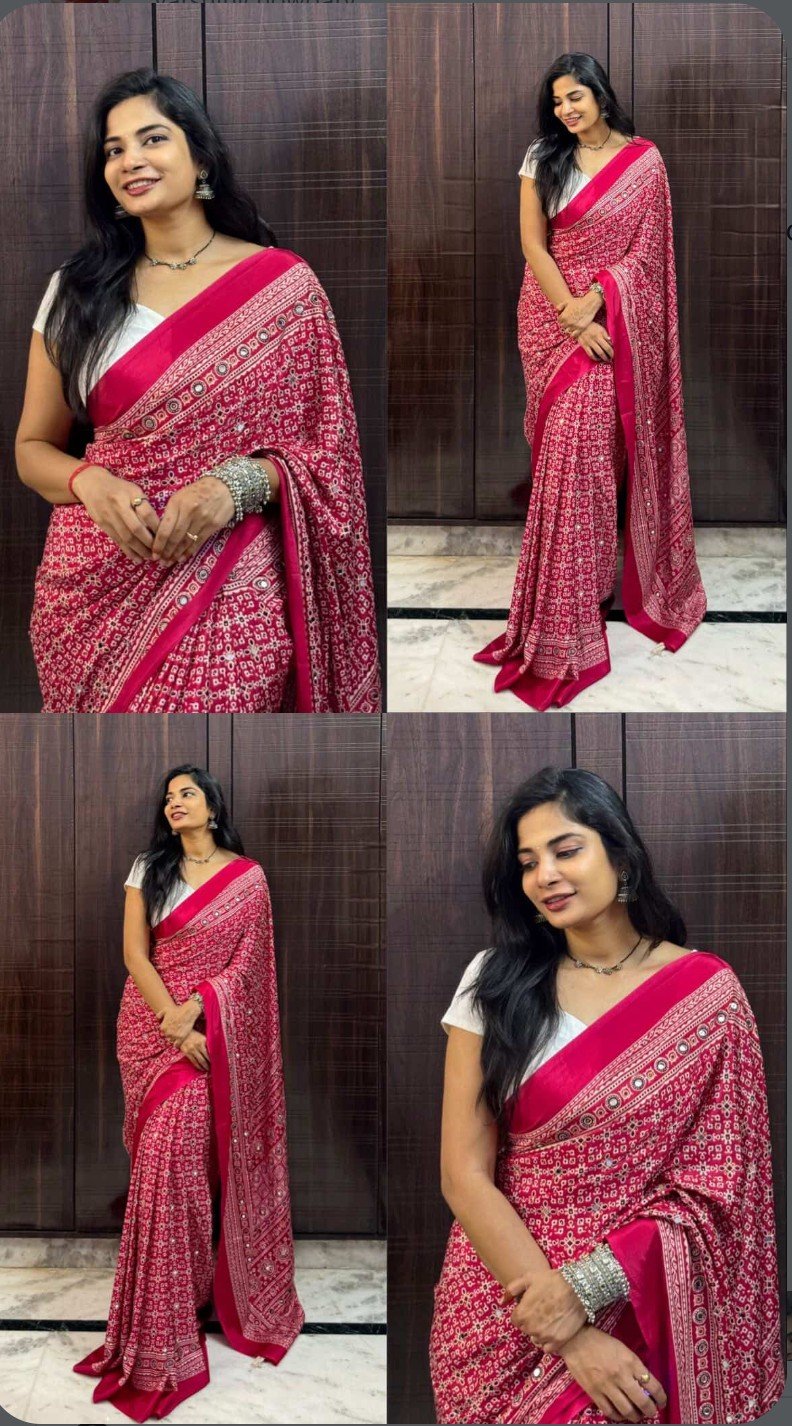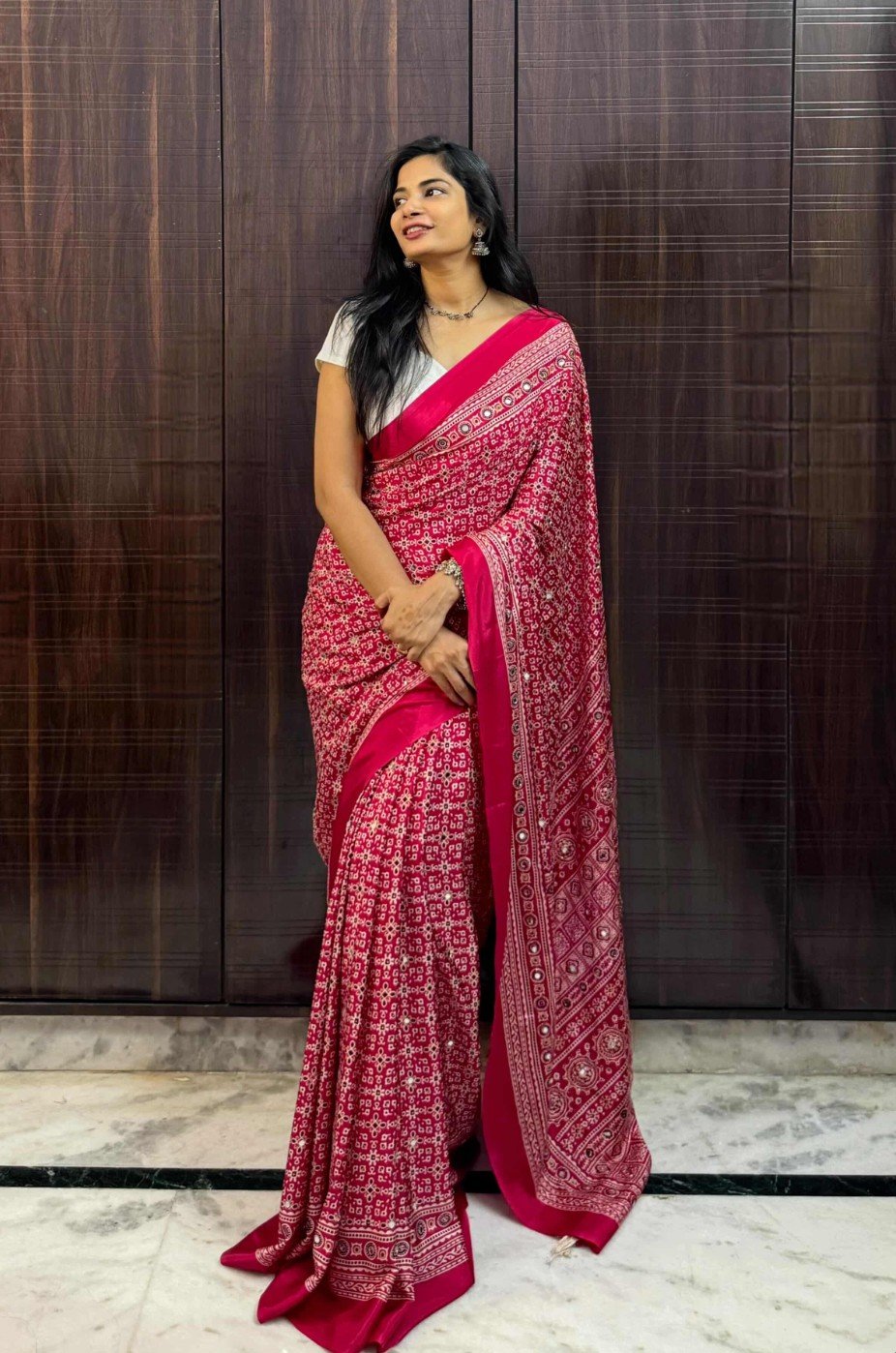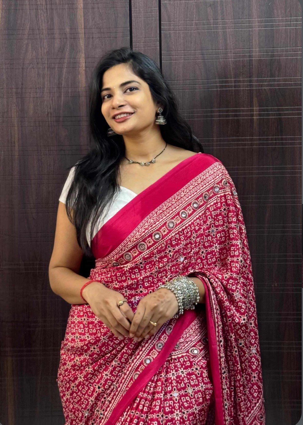 *WORK : Beautifully Ajarakh print with Zari and Reeal mirrror work