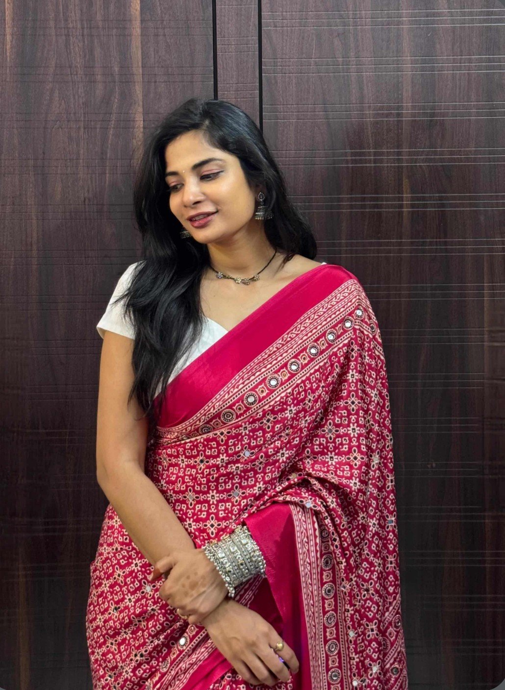 Be the first to review “Varshini Pink Ajarakh Saree” Cancel reply