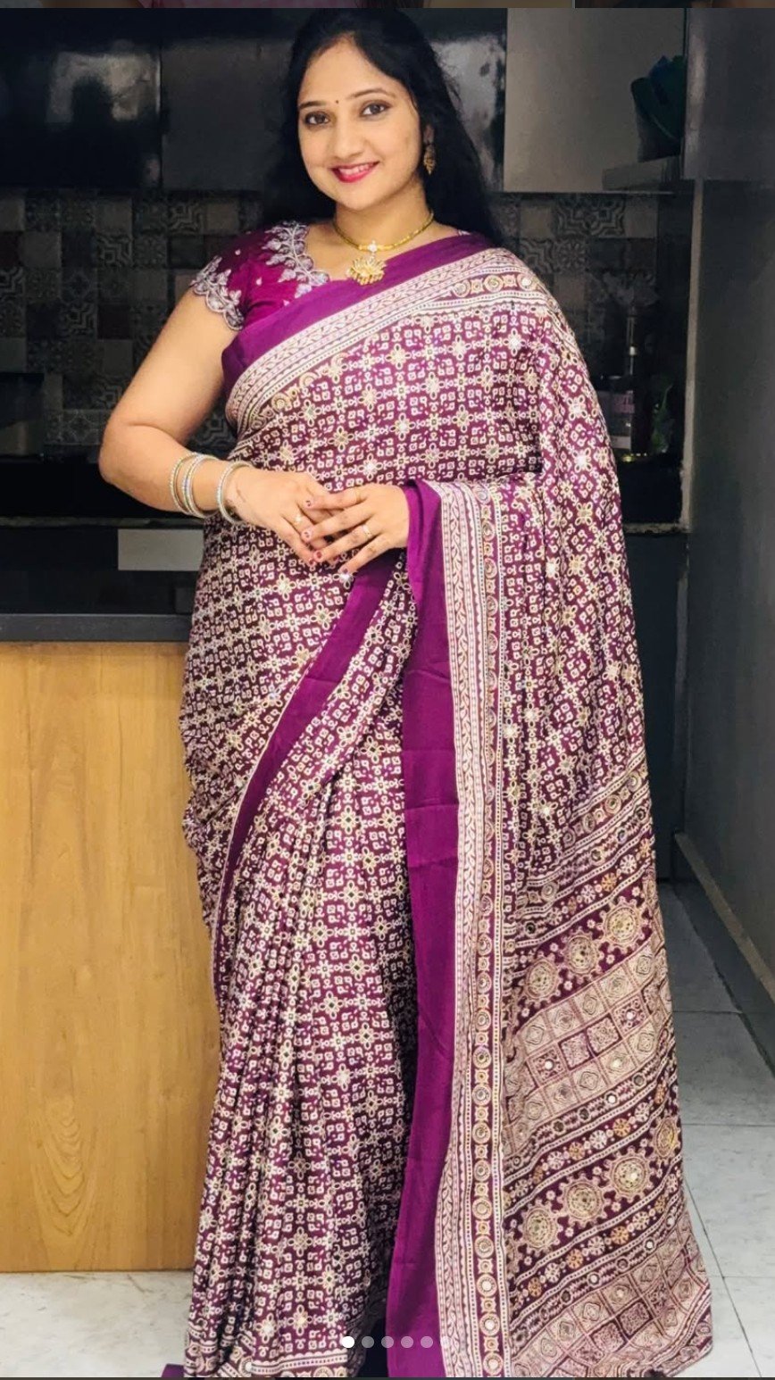 *WORK : Beautifully Ajarakh print with Zari and Reeal mirrror work